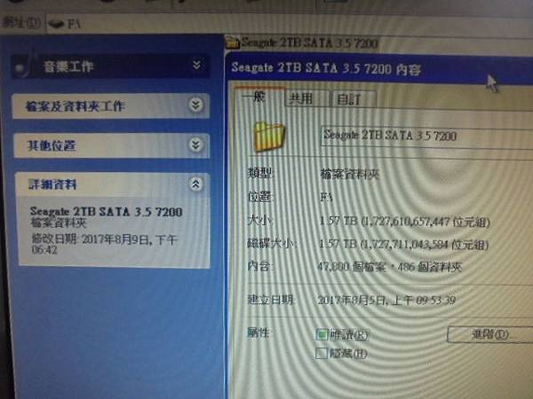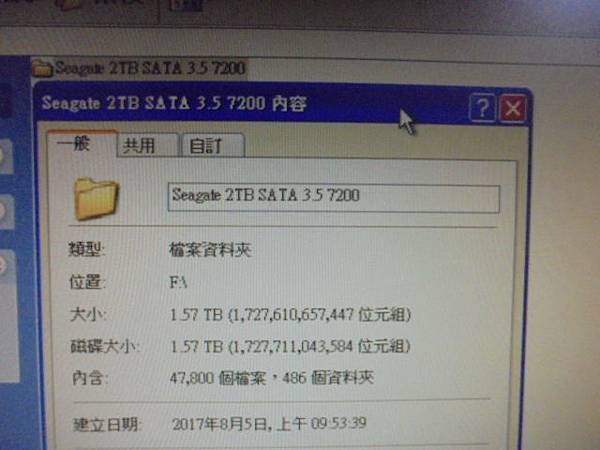 Seagate希捷3.5吋2TB~組裝桌上型電腦使用硬碟→孩子翻倒開機使用中的電腦後斷電~重開機已讀不到硬碟→光華商場針對Seagate希捷3.5吋2TB報價30K救援費用~接上WD監控硬碟2TB檢視救出的容量→新北市板橋區-顧先生【47800個檔案486個資料夾】