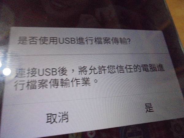 【判定問題】ASUS華碩ZenFone 2 Laser→32GB智慧型手機ZE550KL~手機拍攝及儲存很多重要相片和影片→卻自己做了恢復原廠設定~要救回重要的照片影片檔案→是否使用USB進行檔案傳輸將允許您信任的電腦進行作業~新北市新莊區-廖小姐【點選是】