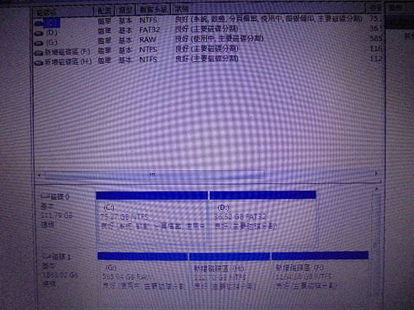 【兩部筆電】LENOVO聯想ThinkPad Edge筆記型電腦02172GV~筆電使用多年感覺開機關機速度都變慢→NB的使用效能也變差~已更換新的SSD固態硬碟提升速度與效能→滑鼠點進存放裝置磁碟管理~五股工業區-陳先生【SSD硬碟原廠切割為4個使用磁區】