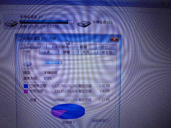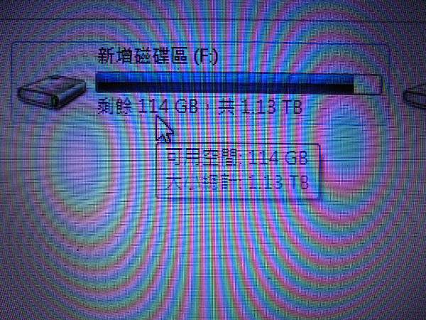 TOSHIBA東芝750GB~2.5吋硬碟為TOSHIBA東芝NB出廠搭載→改為資料碟儲存重要檔案使用卻出現未格式化視窗~由其他人判定無法救援處理→已救出結婚與蜜月照片~新增磁碟區(F:)剩餘114GB共1.13TB→新北市三重區-蔡小姐【已使用1.02TB容量1.13TB】
