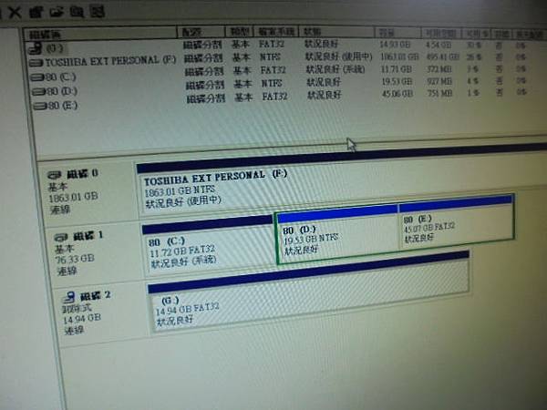 TOSHIBA東芝750GB→2.5吋硬碟為TOSHIBA東芝筆電出廠搭載~更換SSD硬碟後改為資料碟使用儲存照片影片→不知原因出現未格式化視窗~已救出硬碟裏的重要檔案資料→磁碟1基本1863.02GB~新北市三重區-蔡小姐【新增磁碟區(F:)1164.38GB良好NTFS】