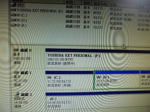 不知名品牌青蛙造型~16GB隨身碟插在桌上型電腦讀取→看得到隨身碟裏的所有檔案資料~但點選檔案時會閃退→完全無法複製取出檔案~要救回公司重要的文件檔案→滑鼠點進存放磁碟管理~新北市中和區-鍾先生【磁碟區G:檔案系統FAT32狀況良好】 不知名品牌青蛙造型~16GB隨身碟插在桌上型電腦讀取→看得到隨身碟裏的所有檔案資料~但點選檔案時會閃退→完全無法複製取出檔案~要救回公司重要的文件檔案→磁碟2卸除式14.94GB連線~新北市中和區-鍾先生【(G:)14.94GB狀況良好FAT32】