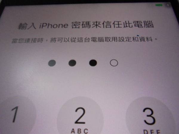Apple蘋果iPhone 8 Plus~64GB智慧型手機借給朋友使用前沒將檔案備份→朋友歸還手機時才發現已被做重置~所有重要檔案均消失不見→要救回手機ROM裏的相片影片檔案~輸入iPhone密碼來信任此電腦→臺中市南區-湯小姐【鍵入客戶提供的4個數字】