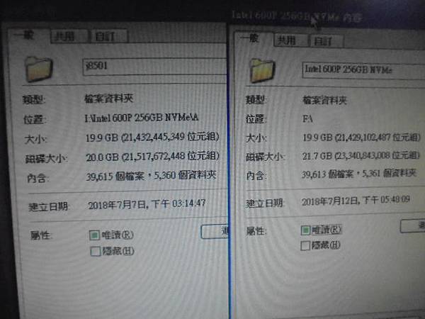 ACER宏碁SF314-51~筆記型電腦更新作業系統後→就進不去Windows 10~送ACER宏碁原廠無法協助複製與拷貝檔案→已救回Intel NVMe固態硬碟裏桌面與下載資料夾的檔案資料~比對F:與I:兩個磁碟資料夾→新北市汐止區-周小姐【檔案數量容量正確】