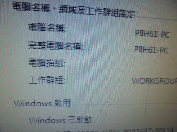 ASUS華碩CM6431桌上型電腦→原廠搭載Windows 7作業系統~已自行還原系統後安裝Office 2010→不知原因卻無法安裝~當天晚上的工作需要使用Office辦公室軟體→電腦名稱完整電腦名稱P8H61-PC~新北市淡水區-李小姐【Windows啟用Windows已啟動】