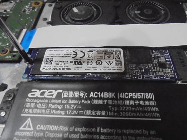 ACER宏碁SF314-51~筆記型電腦更新作業系統後→就進不去Windows 10~送ACER宏碁原廠無法協助複製與拷貝檔案→已救回Intel NVMe固態硬碟裏桌面與下載資料夾的檔案資料~將THNSN5256GPU7插入→新北市汐止區-周小姐【取十字起子鎖緊固定螺絲】