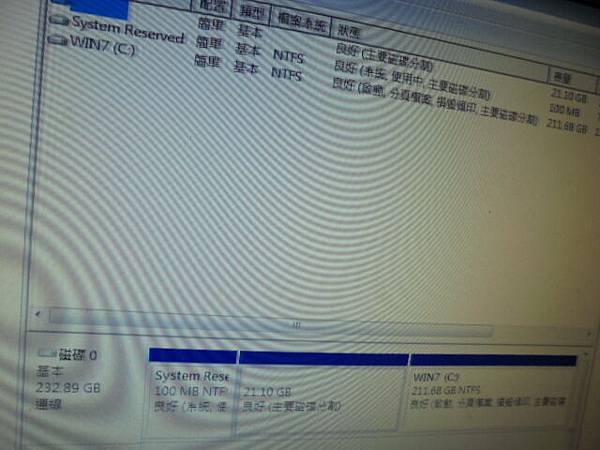 ASUS華碩CM6431桌上型電腦→原廠搭載Windows 7作業系統~已自行還原系統後安裝Office 2010→不知原因卻無法安裝~當天晚上的工作需要使用Office辦公室軟體→磁碟0基本232.89GB~新北市淡水區-李小姐【21.1GB系統還原磁區WIN 7良好211.68GB】