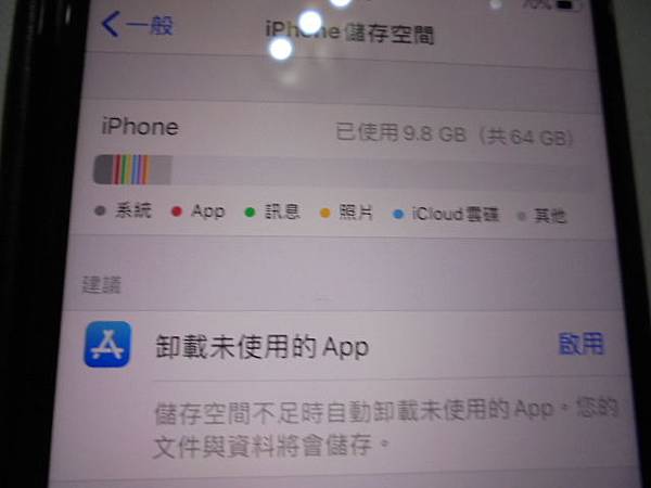 【客戶取回】Apple蘋果iPhone 8 Plus~64GB智慧型手機因容量快滿→開機出現蘋果圖案先做重置解決問題~相片影片檔案均消失不見→要救回內建記憶體中的相片影片~手指往下滑動至iPhone儲存空間→臺北市內湖區-林先生【已使用9.8GB共64GB】