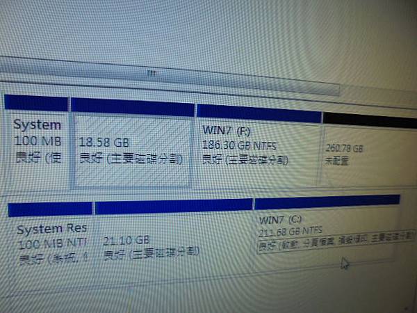 ASUS華碩CM6431桌上型電腦~不久前還原ASUS原廠搭載的Windows 7作業系統→自行安裝Office 2010~卻無法成功安裝→改為SSD硬碟重新安裝Windows與Office軟體~游標滑至WIN7(F:)→新北市淡水區-李小姐【點滑鼠右鍵工具列滑至刪除磁碟區(D)】