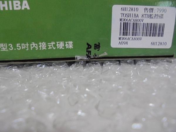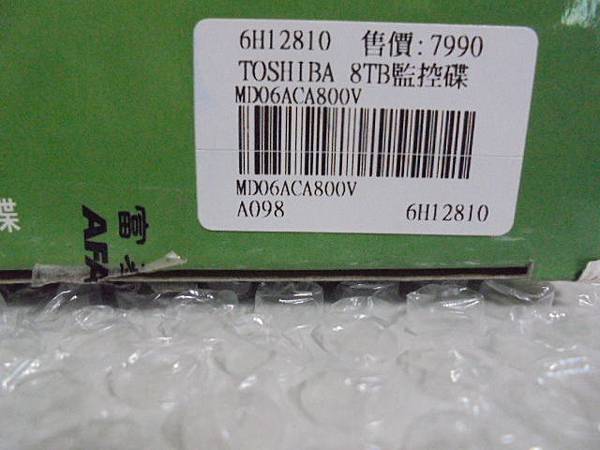 【宅配檢測】TOSHIBA東芝8TB→3.5吋硬碟為資料碟但未說明損壞原因~扯壞SATA接座15Pin電源塑膠片後無法使用→拆下電路板自覺無法處理~要修復硬碟接座取出檔案→TOSHIBA東芝硬碟原廠紙盒底部側邊~新竹市東區-蔡先生【貼有售價7990元標籤】