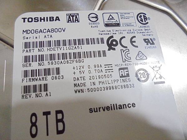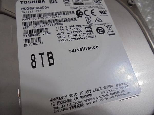 【宅配檢測】TOSHIBA東芝8TB→3.5吋硬碟為資料碟但未說明損壞原因~扯壞SATA接座15Pin電源塑膠片後無法使用→拆下電路板自覺無法處理~要修復硬碟接座取出檔案→TOSHIBA東芝原廠標籤貼紙~新竹市東區-蔡先生【surveillance監控硬碟8TB】