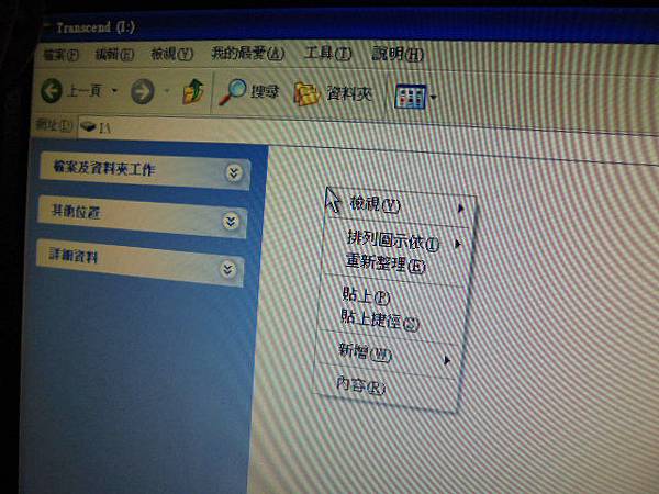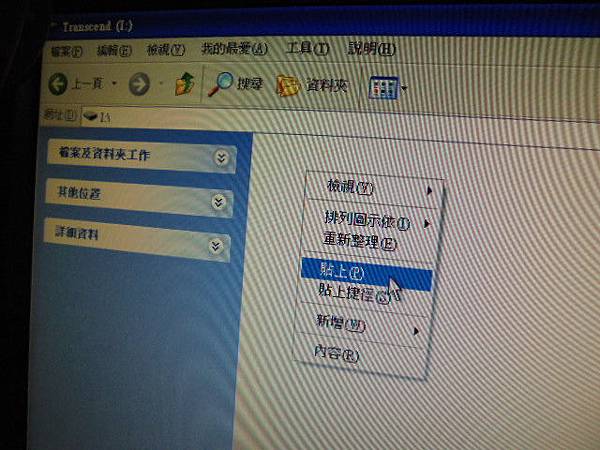 不知名品牌青蛙造型→16GB隨身碟插在桌上型電腦讀取~看得到檔案但點選檔案時會閃退→出現Windows延遲寫入失敗~無法複製與取出檔案→已救回重要的文件檔案~於Transcend(I:)點滑鼠右鍵彈出工具列→新北市中和區-鍾先生【光棒下移到貼上P】
