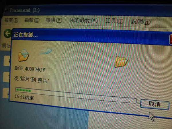 不知名品牌青蛙造型→16GB隨身碟插在桌上型電腦讀取~看得到檔案但點選檔案時會閃退→出現Windows延遲寫入失敗~無法複製與取出檔案→已救回重要的文件檔案~Transcend(I:)正在複製.MOV從照片到照片→新北市中和區-鍾先生【從照片到照片】