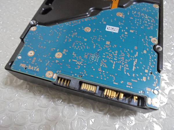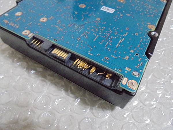 【確認問題】TOSHIBA東芝3.5吋~8TB硬碟為資料碟但未說明損壞原因→扯壞SATA接座15Pin電源塑膠片導致無法使用~拆下電路板自覺無法處理→要修復硬碟接座取出檔案~將TOSHIBA東芝硬碟翻至背面→新竹市東區-蔡先生【目視嚴重損壞的SATA接座】