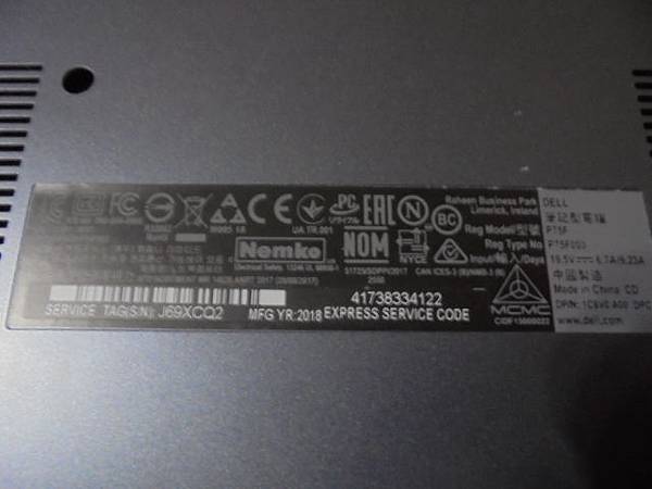 DELL戴爾P75F遊戲專用手提電腦~電競筆記型電腦開機使用時覺得風扇轉動變得大聲→要清理CPU風扇與加散熱膏~改善現階段的異常狀況→因為曾經是我服務過的客戶~原廠標籤印有多種相關安規認證→新北市板橋區-林小姐【MFG YR 2018 P75F003】