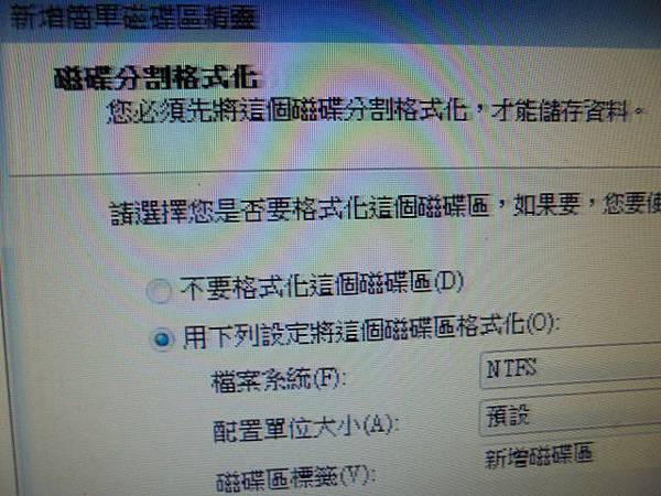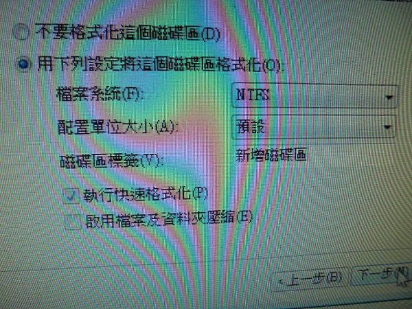 ASUS華碩CM6431桌上型電腦~不久前還原ASUS原廠搭載的Windows 7作業系統→自行安裝Office 2010~卻無法成功安裝→改為SSD硬碟重新安裝Windows與Office軟體~用下列設定將這個磁碟區格式化O→新北市淡水區-李小姐【勾選快速格式化P>下一步】