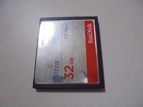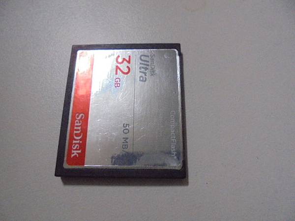 【硬碟裝回】SanDisk晟碟CF記憶卡32GB~裝在Canon佳能5D II單眼相機→當天上午拍攝了幾百張相片後~插讀卡機連接MacBook Pro電腦發現都是空的→要救回JPEG照片~記憶卡翻至背面平放於桌面上俯視外觀→新北市板橋區-張小姐【亦無損傷變形】