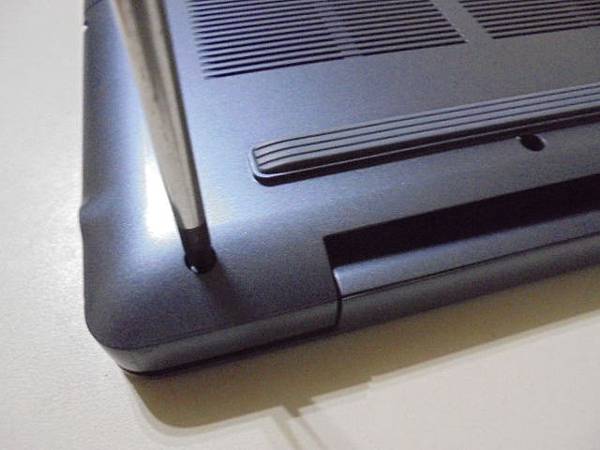DELL戴爾P75F遊戲專用手提電腦~電競筆記型電腦開機使用時覺得風扇轉動變得大聲→要清理CPU風扇與加散熱膏~改善現階段的異常狀況→因為曾經是我服務過的客戶~取工具順著上蓋底蓋間的細縫劃開→新北市板橋區-林小姐【順利橇開原廠底蓋】