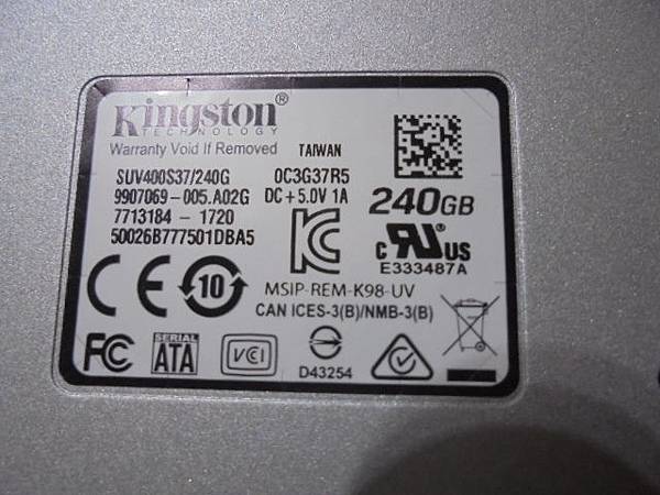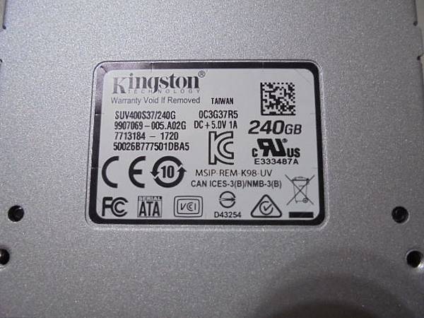 【檔案救出】Kingston金士頓UV400固態硬碟240GB→改裝在ASUS品牌電腦~Windows 10出現修復磁碟視窗後→SSD硬碟裏的所有檔案全數消失~要救回工作用的檔案資料→將SSD硬碟翻至背面有多種安規認證TAIWAN~臺北市北安路-鄒先生【240GB 1720】