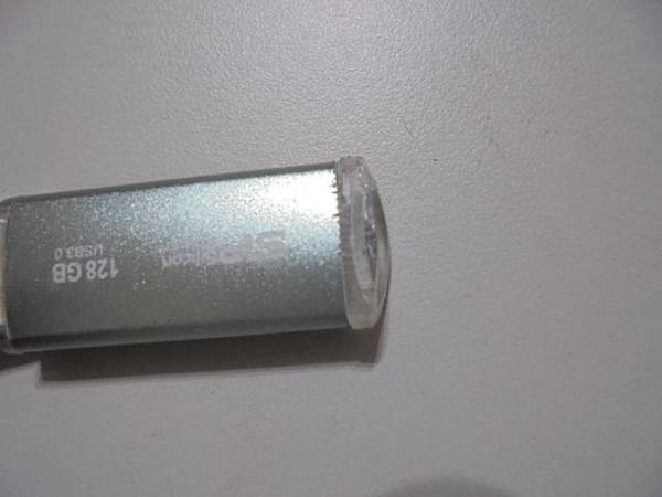 【拆殼判定】SP廣穎Marvel M01~USB 3.0隨身碟128GB插在電腦讀取→不慎撞到導致USB接頭歪斜後自行扳直~再插上電腦已讀取不到裝置→要救回隨身碟裏全數檔案資料~取工具將隨身碟底部透明機構件拔出→臺北市建國北路-張先生【膠黏的相當緊】