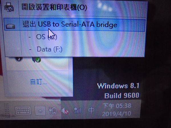 【親送檢測】ASUS華碩S400C→VivoBook筆記型電腦~已經多年未曾使用→國外居住幾年後近期返國~電腦開機使用異常送ASUS判定硬碟損壞→已改為SSD固態硬碟繼續使用~點安全地移除硬體並退出媒體→臺北市中正區-白小姐【工具列彈出相關裝置】
