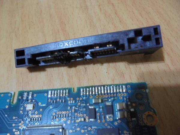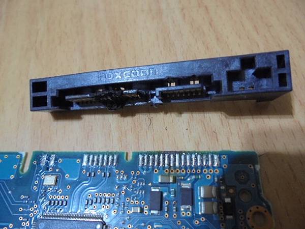 【嚴重燒毀】TOSHIBA東芝3.5吋~1TB硬碟為品牌電腦出廠所搭載→不明原因短路後燒毀SATA電源接座15Pin~電源接口焦黑完全無法使用→曾經找過我更換SATA接座~由TOSHIBA東芝硬碟電路板拆下燒毀SATA接座→臺東縣臺東市-陳先生【FOXCOON鴻海】