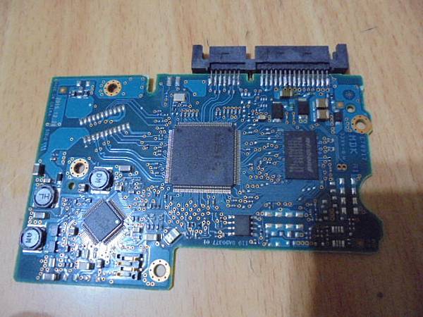 【宅配維修】TOSHIBA東芝1TB→3.5吋硬碟為品牌電腦出廠時搭載~不明原因短路後燒毀SATA電源接座15Pin→電源接口焦黑完全無法使用~要救出硬碟裏的檔案資料→將硬碟電路板翻回背面~臺東縣臺東市-陳先生【目視SATA接觸22隻金屬針腳均完整】