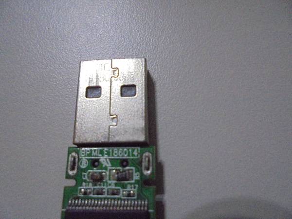 【更換接頭】ADATA威剛C802→4GB隨身碟插在桌上型電腦讀取~被其他人撞到後USB接頭金屬針腳黏在USB接座上→導致隨身碟無法使用~要救回隨身碟裏Excel檔案資料→將隨身碟電路板翻至背面~新北市板橋區-許小姐【USB A接頭烙有4GB與產品序號】