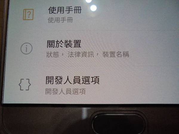 SAMSUNG三星Note 5~SM-N9208智慧型手機32GB的Micro USB接座損壞→送三星原廠更換新品後卻被恢復原廠設定~所有檔案資料全數消失不見→想救出簡訊與通話錄音檔~設定>滑至開發人員選項→嘉義縣東石鄉-鄭小姐【右手食指點進開發人員選項】