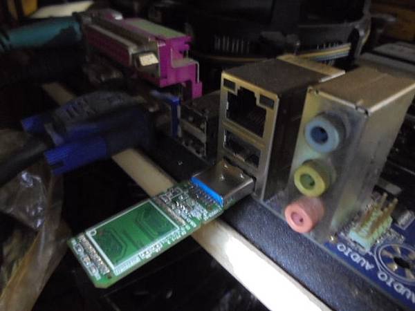 【接捕斷線】Transcend創見700~32GB隨身碟USB 3.0插在電腦讀取資料時→撞歪USB 3.0接頭~扯斷電路板多條印刷線路無法讀取→要救回隨身碟重要工作檔案資料~把Transcend創見700隨身碟電路板接上USB延長線→南投縣魚池鄉-李先生【閃爍藍燈】