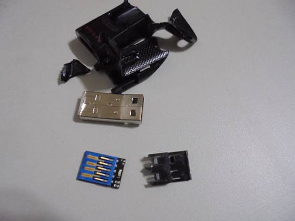 【現場完修】SanDisk晟碟Ultra SDCZ48→64GB隨身碟插在公司電腦前置USB接座~被撞歪USB 3.0接頭15度再自己扳直→以多部電腦測試都讀取不到隨身碟~要救回檔案資料→隨身碟電路為COB封裝製程設計~新北市中和區-陳先生【所有拆出的機構件】