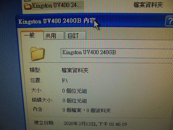 【現場檢測】Kingston金士頓UV400固態硬碟240GB→改裝在ASUS品牌電腦~Windows 10出現修復磁碟視窗後→SSD硬碟裏的所有檔案全數消失~要救回工作用的檔案資料→約半小時後客戶線上回覆好 同意~臺北市北安路-鄒先生【我再回覆已動工處理】