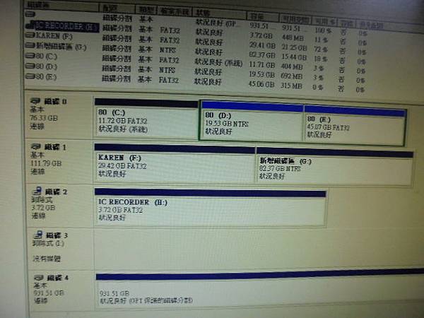 【救回錄音】SONY索尼ICD-UX523F~4GB錄音筆當天下午剛錄好的音檔→在錄音筆中找不到錄音檔案~問過很多朋友都說一定救不回→要救回二個多小時的訪談錄音檔案~滑鼠左鍵點存放裝置磁碟管理→新北市新店區-韓小姐【磁碟4基本931.51GB連線】