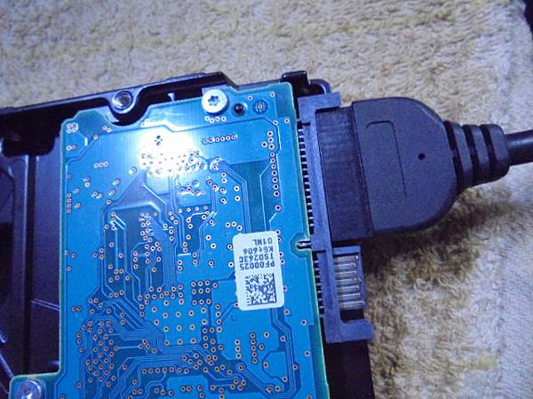 【完修寄還】TOSHIBA東芝3.5吋~1TB硬碟為品牌電腦出廠所搭載→不明原因短路後燒毀SATA電源接座15Pin~電源接口焦黑完全無法使用→曾經找過我更換SATA接座~硬碟翻至背面並平放先套上SATA電源線→臺東縣臺東市-陳先生【再插上SATA訊號線】
