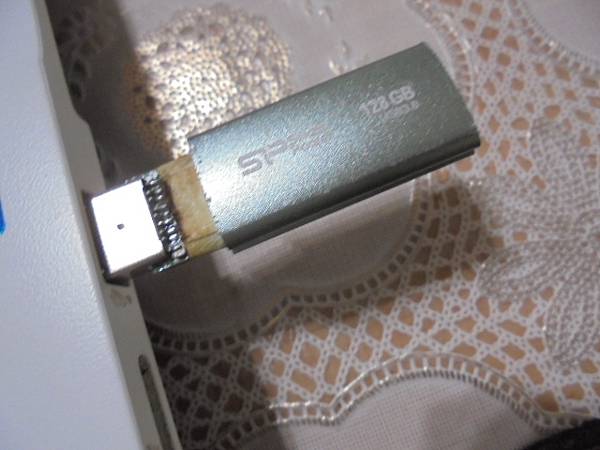 【約定送修】SP廣穎Marvel M01→128GB隨身碟USB 3.0插在電腦讀取~不慎撞到導致USB接頭歪斜後自行扳直→再插上電腦已讀取不到裝置~已救回隨身碟裏全數檔案資料→插在筆電上的隨身碟電路板~臺北市建國北路-張先生【LED指示紅燈由亮轉滅】