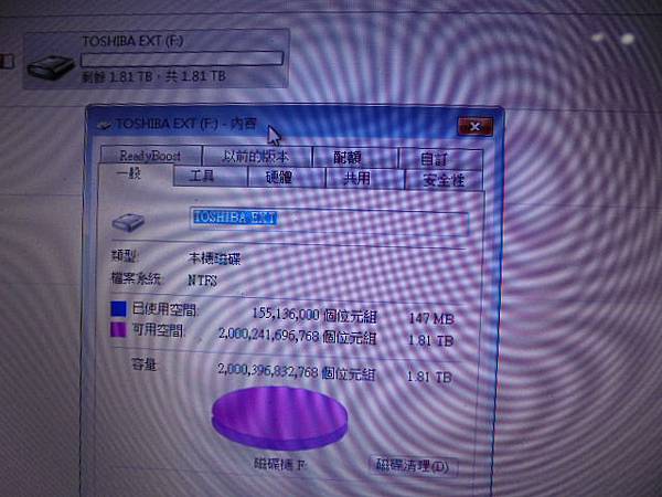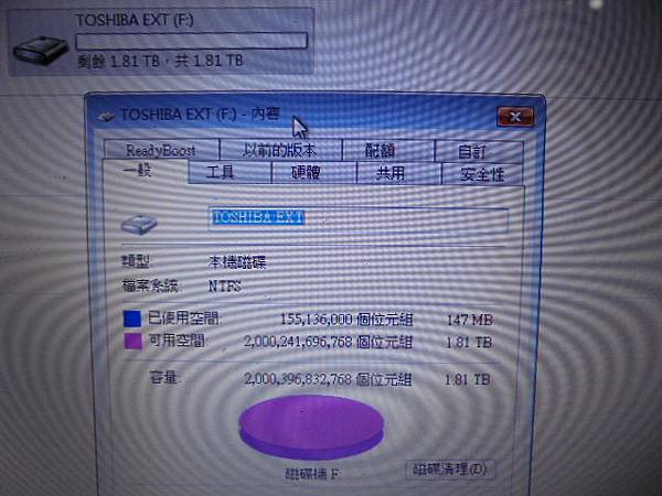 【現場解決】TOSHIBA東芝V5外接式硬碟1TB→傳輸線的Mini USB接座使用時掉落~導致無法使用及讀取→硬碟裏均是公司使用的重要檔案~要解決接座問題讀取檔案資料→磁碟1基本931.51GB連線~新北市板橋區-李小姐【TOSHIBA EXT (F:)狀況良好】