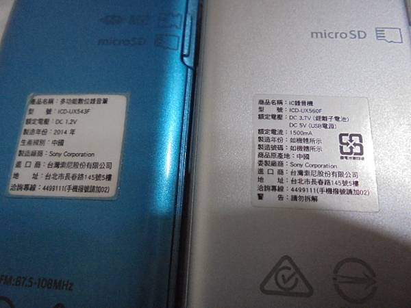 【宅配檢測】SONY索尼ICD-UX543F→4GB錄音筆連接電腦讀不到裝置~無法傳輸檔案亦無法充電→錄音筆已耗完電量無法開機~要救回錄音筆內建記憶體的錄音檔案~將兩隻SONY索尼錄音筆翻至背面→臺北市松江路-邵小姐【原廠的銀色標籤貼紙都還在】