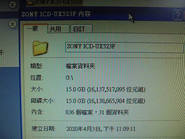 【TAXI送測】SONY索尼ICD-UX523F→4GB錄音筆當天下午剛錄好的音檔~突然在錄音筆中找不到檔案→問很多朋友都說救不回錄音檔~要救回2.5小時的訪談錄音檔案→花了3小時救出的容量>磁碟大小15GB~新北市新店區-韓小姐【836個檔案31個資料夾】