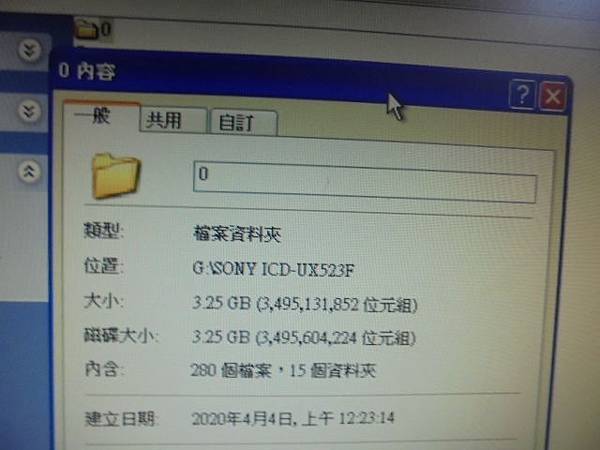 【二十小時】SONY索尼ICD-UX523F→4GB錄音筆當天下午剛錄好的音檔~突然在錄音筆中找不到檔案→問很多朋友都說救不回錄音檔~要救回2.5小時的訪談錄音檔案→0資料夾3.25GB~新北市新店區-韓小姐【SONY ICD-UX523F 280個檔案15個資料夾】