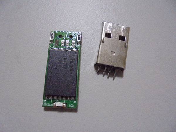 【更換接頭】ADATA威剛MY FLASH精靈碟PD1~1GB隨身碟插在PC電腦使用→不小心撞歪USB接頭導致無法讀取~上網搜尋找到我的維修紀錄→要救回隨身碟的所有工作檔案~備妥新的USB接頭A型→新北市板橋區-楊小姐【比對拆下USB接頭的隨身碟電路板】