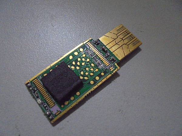【嚴重斷板】pqi勁永U273隨身碟8GB→插在桌上型電腦前置USB接座使用~不慎撞到後導致電腦無法讀取隨身碟→有重要檔案資料存在隨身碟~想修好隨身碟救出重要檔案→隨身碟電路板模組正面與反面~新北市永和區-李先生【合計斷線數量為26條】