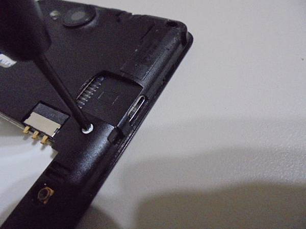 【正確完修】TaiwanMobile台灣大哥大A5S~8GB智慧型手機被水潑到後螢幕轉黑屏→有來電聲音與簡訊通知聲音~多家維修公司都拒修A5S手機→要修好這隻手機繼續使用LINE~記憶卡插槽下方螺絲有防拆貼紙→新北市新店區-陳先生【以十字起子鬆開】
