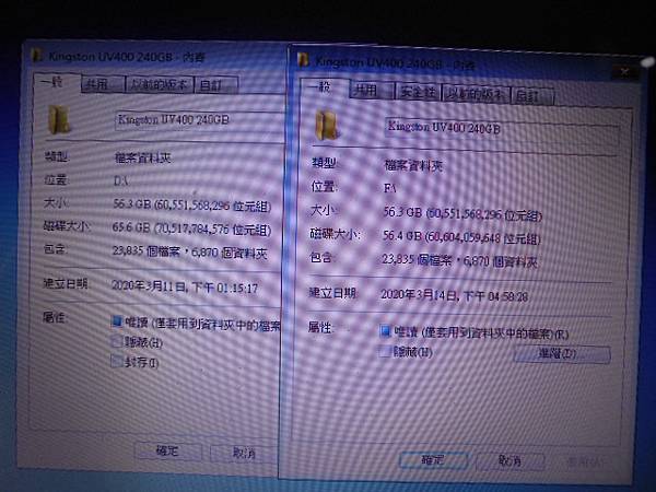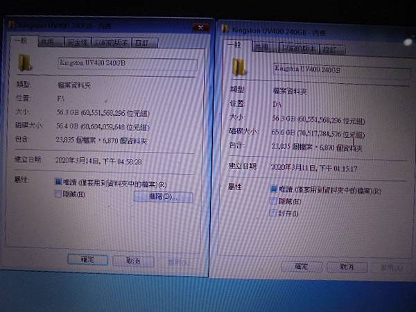 【帶碟裝回】Kingston金士頓UV400固態硬碟240GB~改裝在ASUS華碩品牌PC→Windows 10出現修復磁碟視窗後~SSD硬碟原本磁區已消失不見→已救回工作用的檔案資料~複製完成後比對兩個磁碟資料夾→臺北市北安路-鄒先生【23835檔案6870資料夾】