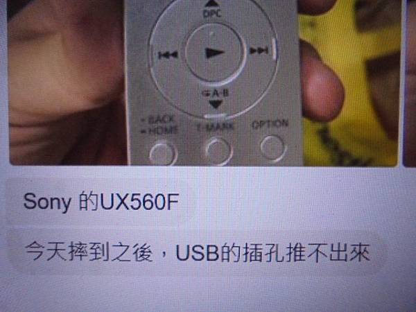 【粉絲專頁】SONY索尼ICD-UX560F→4GB錄音筆先前可正常使用~錄音筆摔落地面後導致USB接頭無法推出→無法充電也無法傳輸檔案~要修好錄音筆USB接頭恢復正常使用→寫明無法推出接頭救無法充電→新北市三重區-黃先生【回覆技術維修請撥電話】