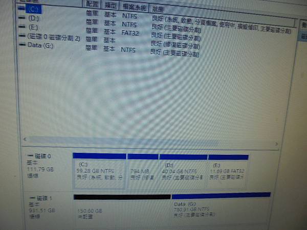 【嚴重燒毀】TOSHIBA東芝3.5吋~1TB硬碟為品牌電腦出廠所搭載→不明原因短路後燒毀SATA電源接座15Pin~電源接口焦黑完全無法使用→曾經找過我更換SATA接座~滑鼠點選存放裝置磁碟管理→臺東縣臺東市-陳先生【磁碟區(G)Data檔案系統NTFS】