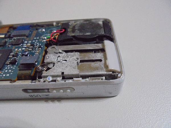 【拆殼判定】SONY索尼4GB~ICD-UX560F錄音筆先前均正常使用→錄音筆摔落地面後導致USB接頭無法推出~無法充電亦無法傳輸檔案→要修好錄音筆USB接頭恢復正常使用~以工具劃開ICD-UX560F錄音筆背蓋卡楯→新北市三重區-黃先生【以繞圈方式】