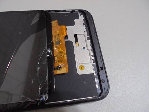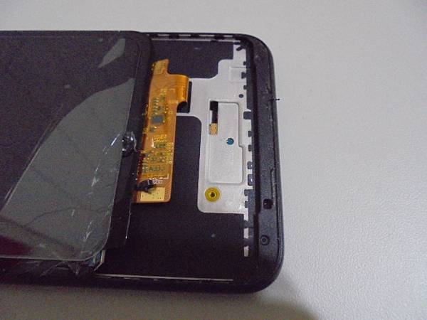 【完工帶回】ASUS華碩ZenFone Max Pro~X00TDB智慧型手機32GB→手機要放進包包時掉落地面導致螢幕左下角破裂~但觸控與使用完全正常→要更換破裂的手機螢幕~螢幕總成下方排線→臺北市萬大路-鄭小姐【還連接在金屬框下方主機板的接座裏】