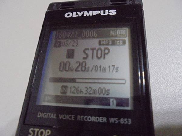 【約定檢測】OLYMPUS奧林巴斯WS-853→8GB錄音筆購買水貨做錄音使用~使用1.5V碳鋅電池/鹼性電池露液→導致錄音筆控制面板OK鍵無法操作~已修好錄音筆按鍵問題→按壓WS-853錄音筆控制板STOP鍵~臺北市大安區-許先生【螢幕顯示STOP 00m28s】