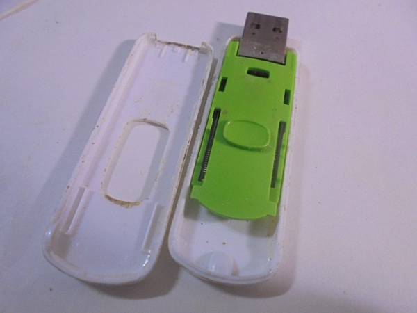 【更換接頭】Transcend創見530~16GB隨身碟插在桌上型PC電腦使用→撞壞USB接頭導致無法過電讀取~上網搜尋找到我的維修紀錄→要救回隨身碟裏的工作檔案資料~取工具分開白色上蓋與下蓋→臺北市內湖區-李先生【看到綠色機構含隨身碟電路板】