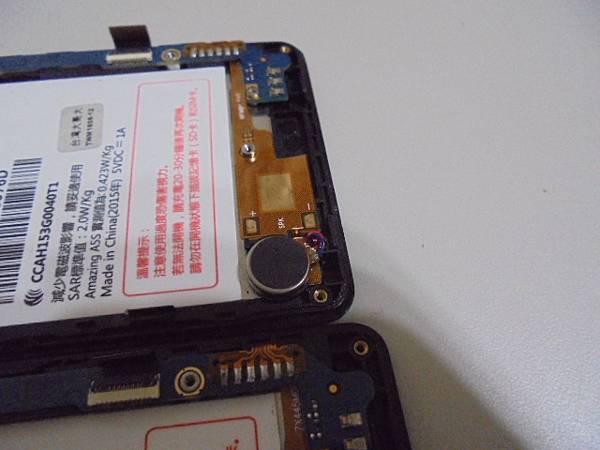 【留機維修】TWM台灣大哥大Amazing A5S→8GB智慧型手機被水潑到後螢幕沒畫面~來電響鈴聲音正常→詢問多家維修公司都說不修低階手機~要修好這隻手機繼續使用LINE→2隻A5S手機的背蓋已拆離~新北市新店區-陳先生【拆出2隻手機的螢幕排線】